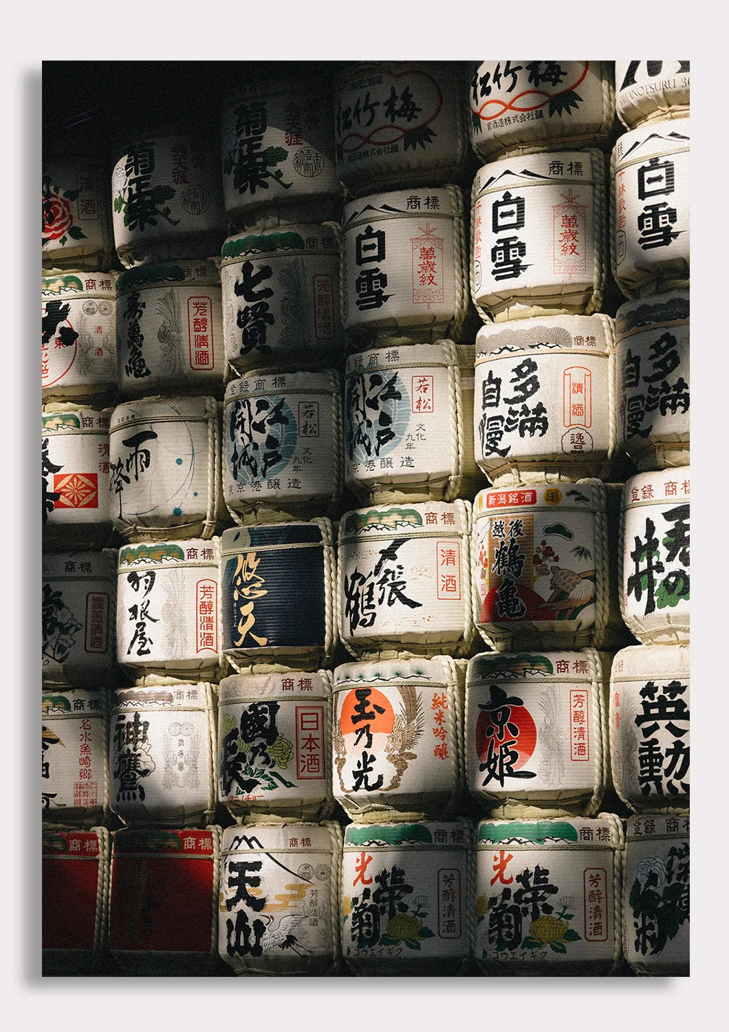 Immerse yourself in the rich cultural heritage of Japan with Eternal Spirits, a striking fine art photograph that captures the timeless beauty of traditional sake barrels. This evocative image showcases rows of intricately decorated barrels, their vibrant colors and elegant calligraphy illuminated by soft spots of sunlight filtering through shadows. The interplay of light and darkness adds depth and dimension, highlighting the craftsmanship and symbolism etched into each barrel. As the shadows dance across the scene, they evoke a sense of mystery and reverence, celebrating the ancient traditions that these sake barrels represent. Perfect for those who appreciate the artistry and cultural significance of Japan, this print brings a touch of elegance and history to any space, reminding us of the enduring spirits that connect past and present.